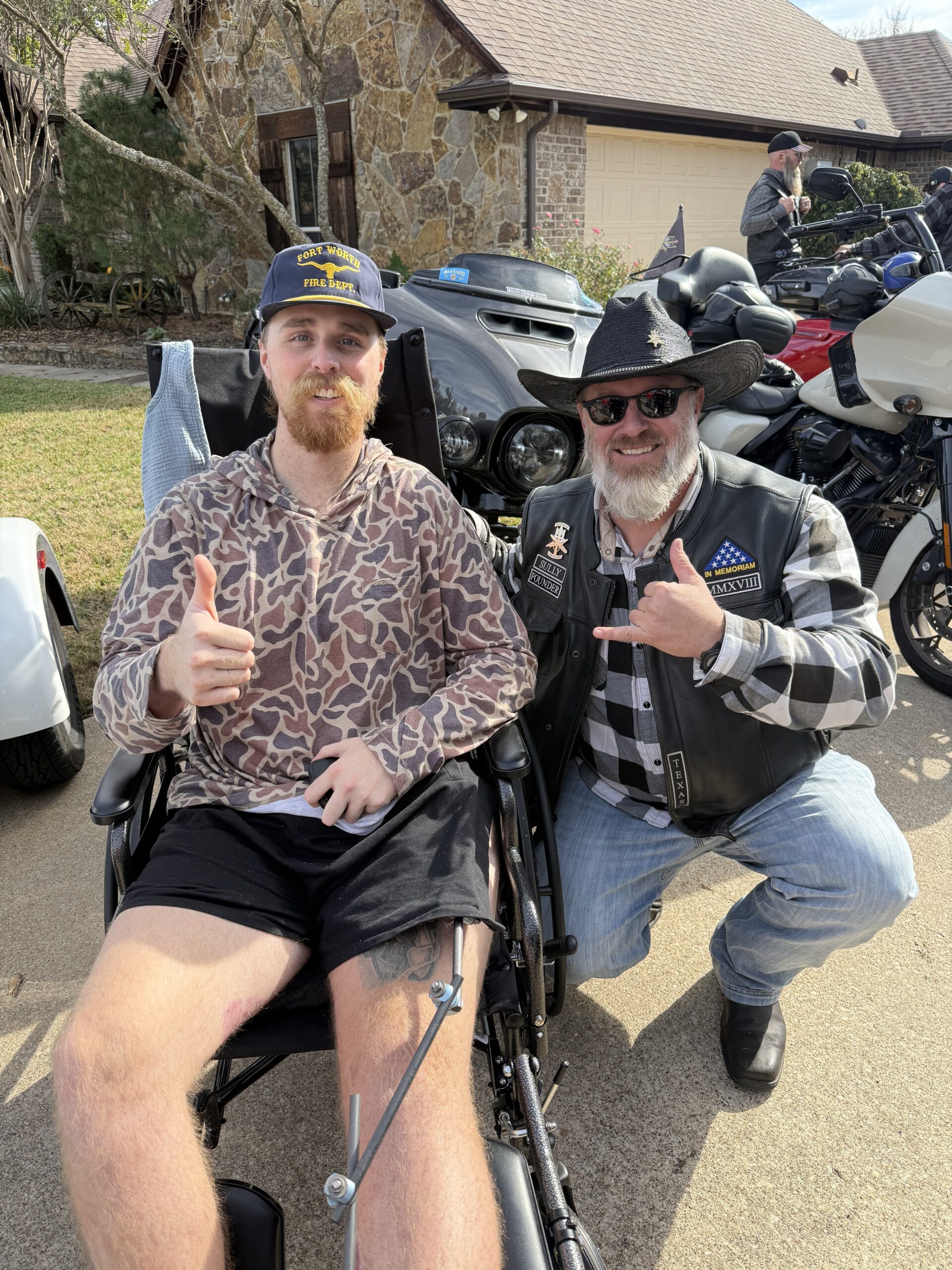 I first met Matt and his wife a year prior to them being selected as a beneficiary family. We were doing a Tour of Texas in 2024 and what better way to show support than help someone local. A friend told us of a fundraiser going on for a local firefighter so we rode out to support in whatever way we could. There were 5 motorcycles riding at the event and when we got back I spoke with Johnetta, Matt’s wife, and asked about Matt’s situation. Well a little over a year later we ended up surprising Matt at the fire station.
